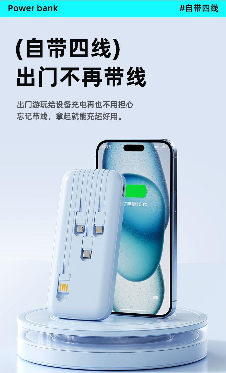 奧蘇米開門紅3C認(rèn)證10000毫安內(nèi)置線移動電源R07K