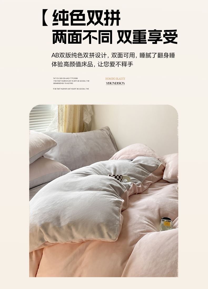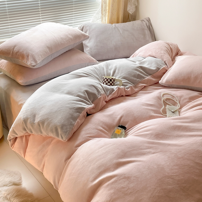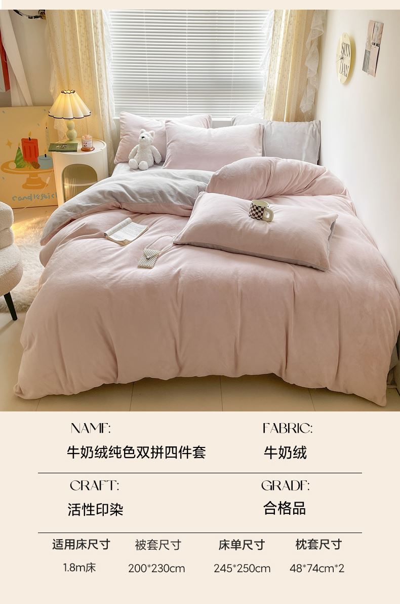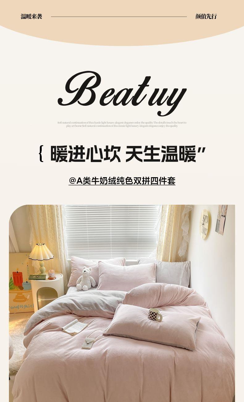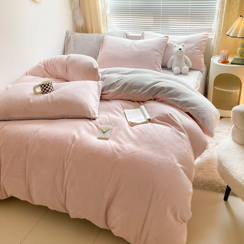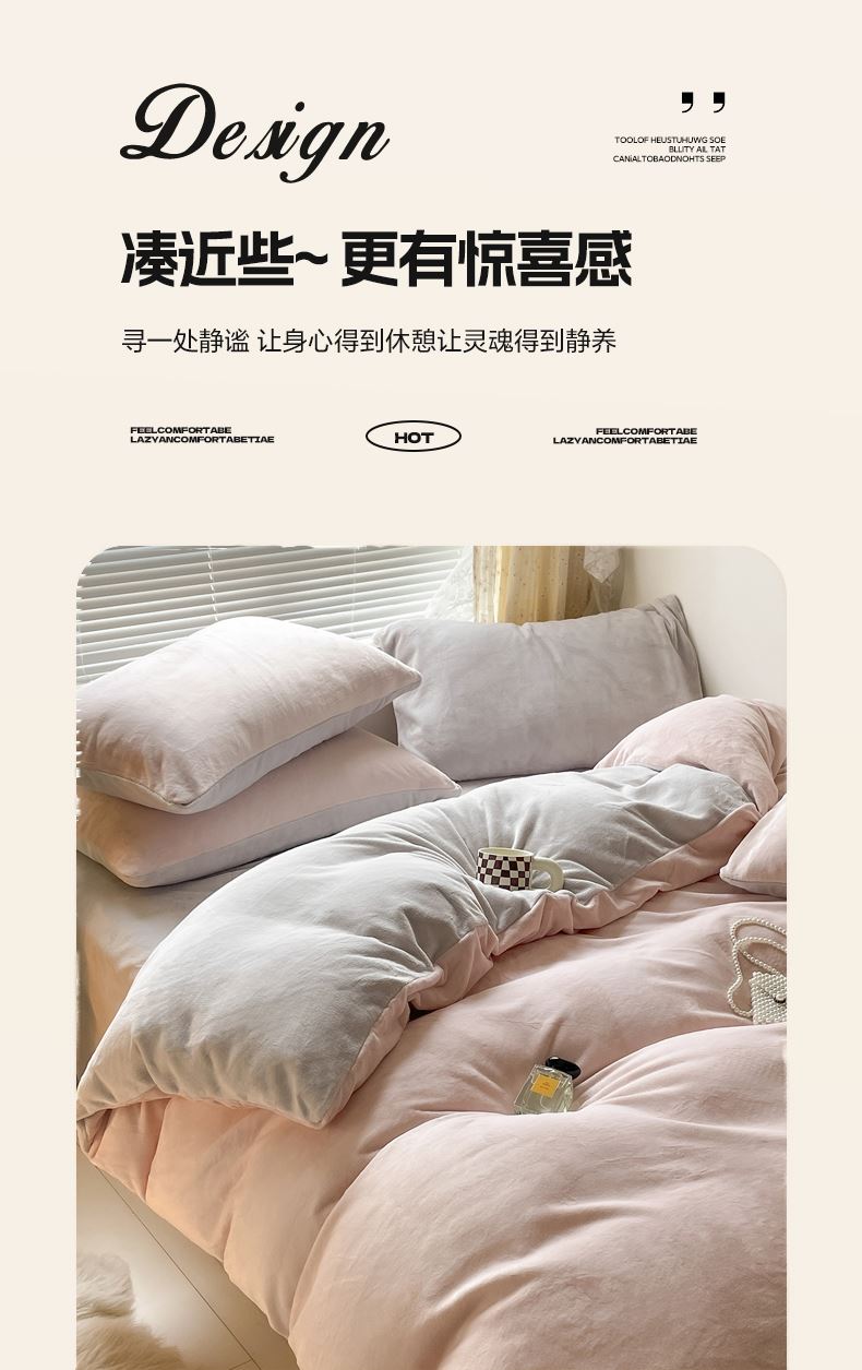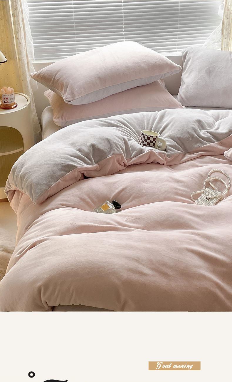 百麗安娜純色牛奶絨四件套-粉灰 百麗安娜純色牛奶絨四件套-粉灰