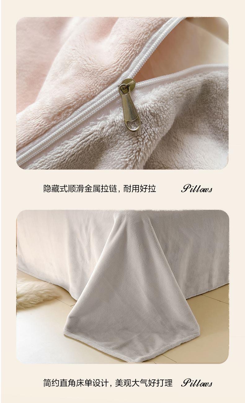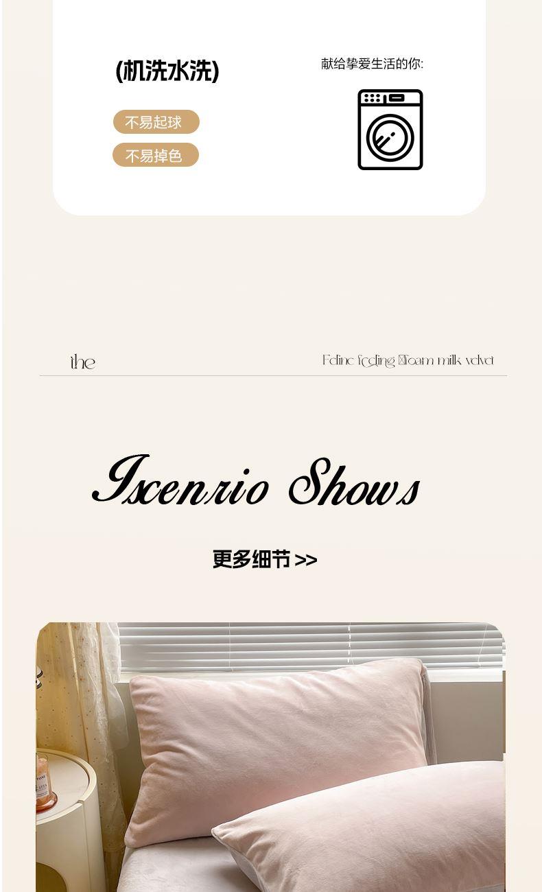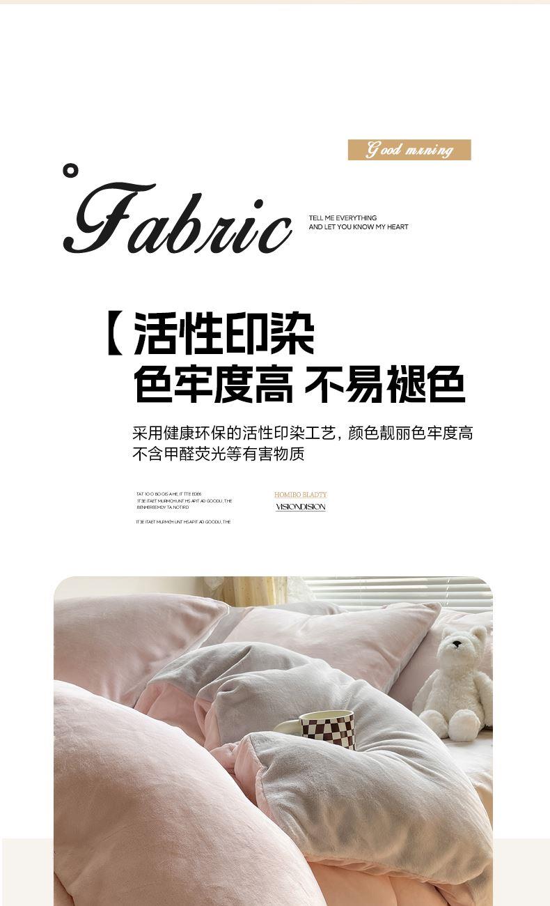 被套:200×230cm 床單:245×250cm 枕套:48×74cm 適用:1.5M-1.8M床 面料:牛奶絨(抗靜電) 風(fēng)格 : 輕奢風(fēng)格 高克重牛奶絨細(xì)密緊實(shí)、柔軟細(xì)膩、加厚保暖、鎖溫蓄熱能力好,告別冬日冷被窩,可以暖呼呼睡個(gè)好覺(jué),獨(dú)享屬于你的私人空間。