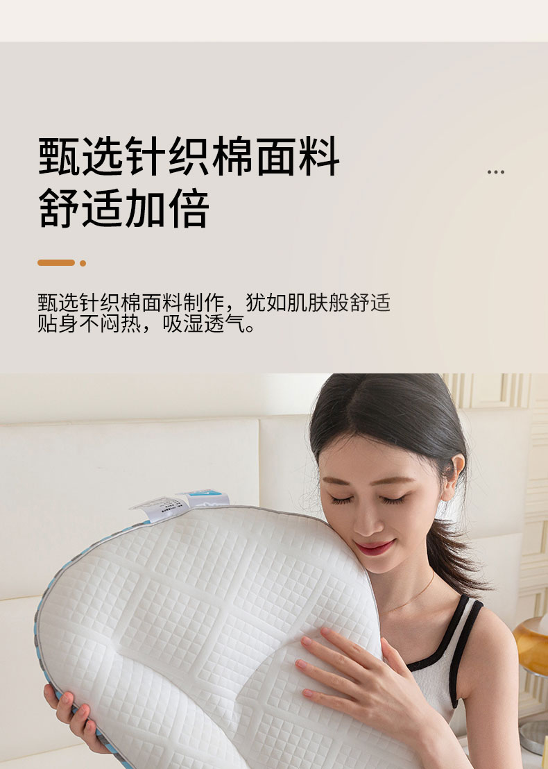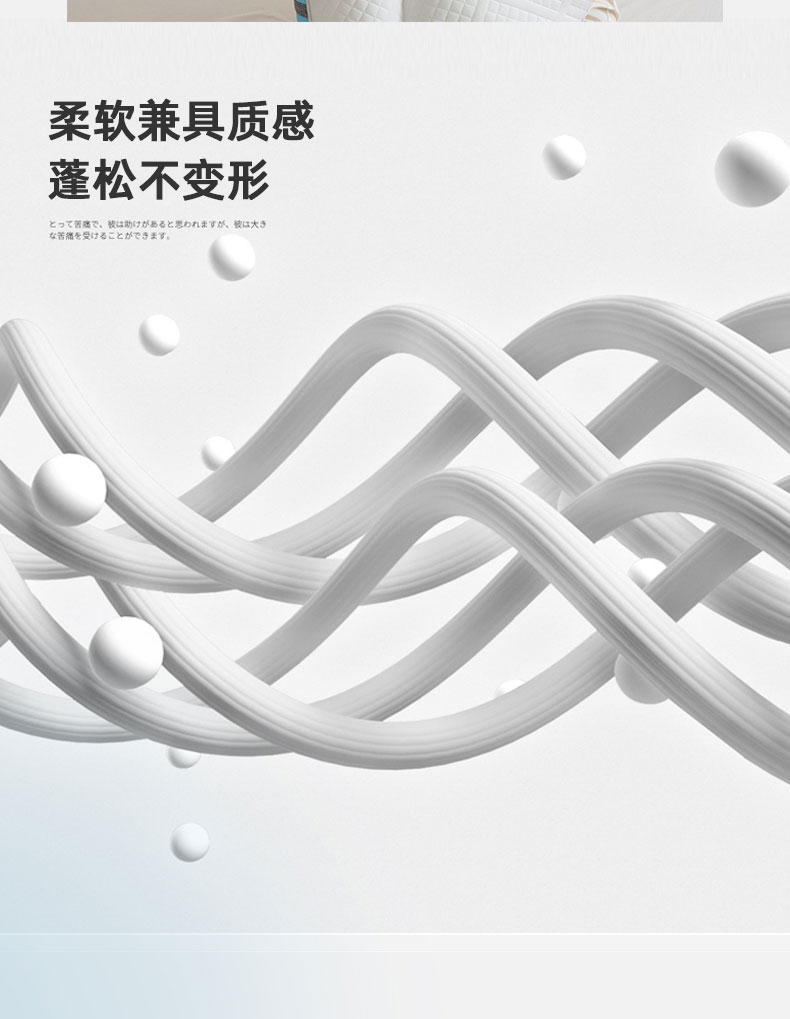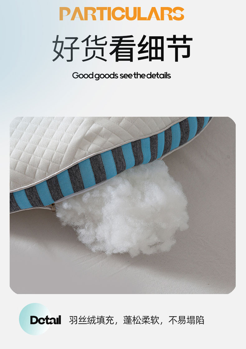 枕套:牛奶針織棉 枕芯:高彈羽絲棉 規(guī)格:60*40cm 甄選A類牛奶針織棉,手感細膩,親膚透氣,立體感較好。面料里層縫天然睡覺薄片。高彈性纖維填充,快速回彈,不易坍塌。四周精美包邊工藝,簡約有格調。