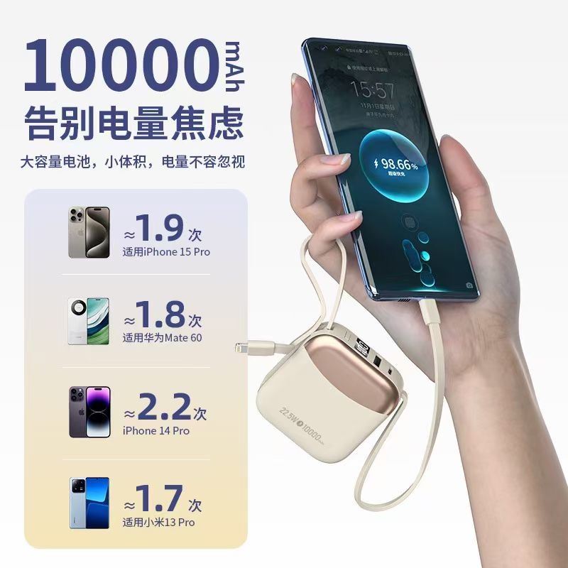 奧蘇米3C認(rèn)證小貝22.5W超級(jí)快充自帶線移動(dòng)電源R56J