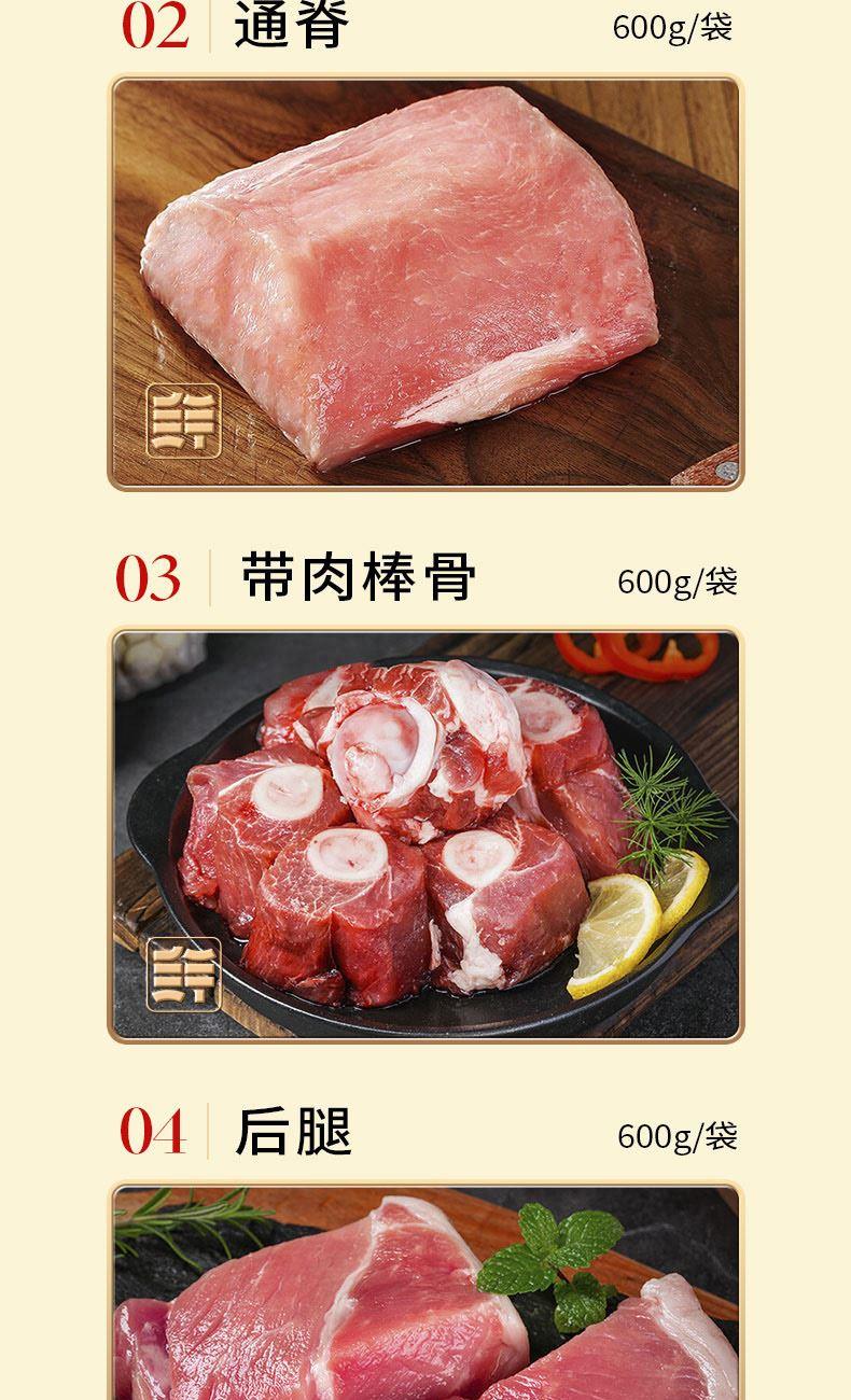 冰鮮黑豬瘦肉 600g*1袋 冰鮮黑豬后腿 600g*1袋 冰鮮黑豬帶肉棒骨 600g*2袋 冰鮮黑豬里脊(通脊) 600g*1袋