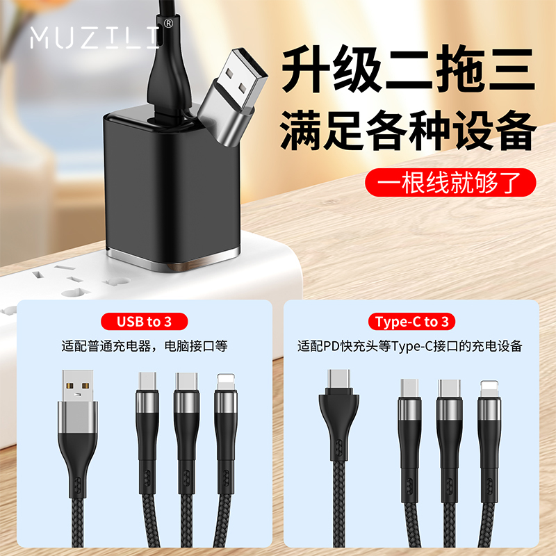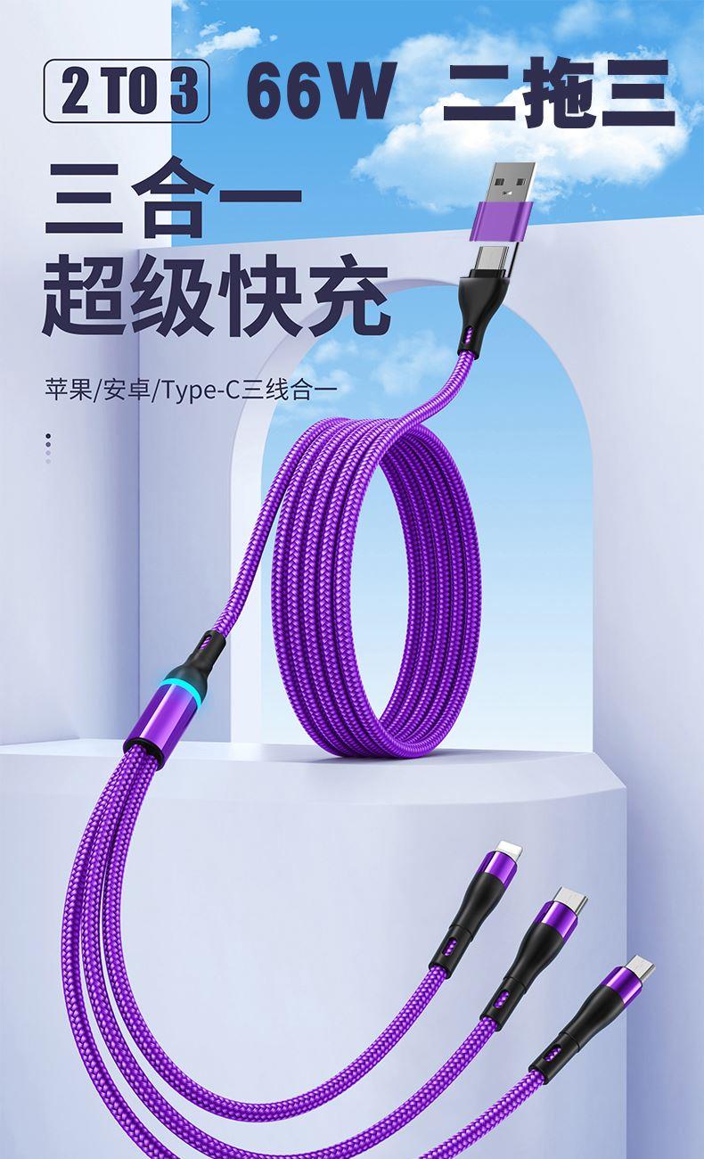 奧蘇米S6B二拖三66W快充柔光燈數(shù)據(jù)線