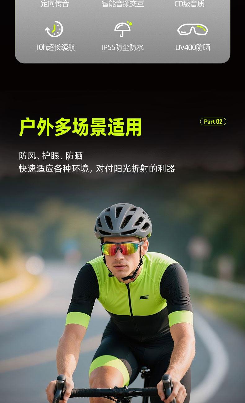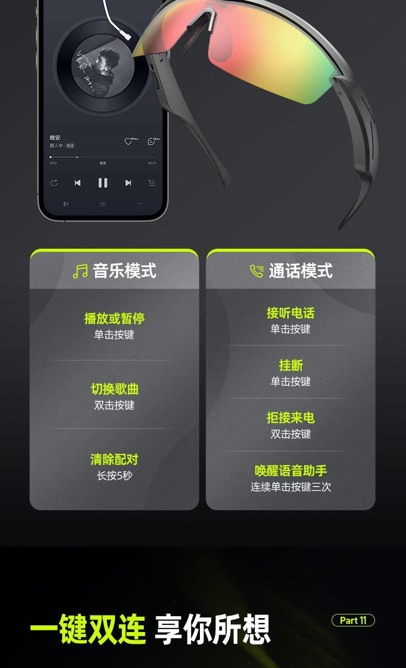 跑步騎行登山專用,墨鏡耳機雙功能適配近視