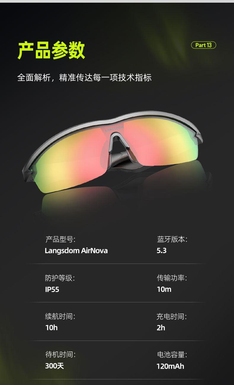 蘭士頓運動音頻眼鏡藍牙耳機AirNovaBH01