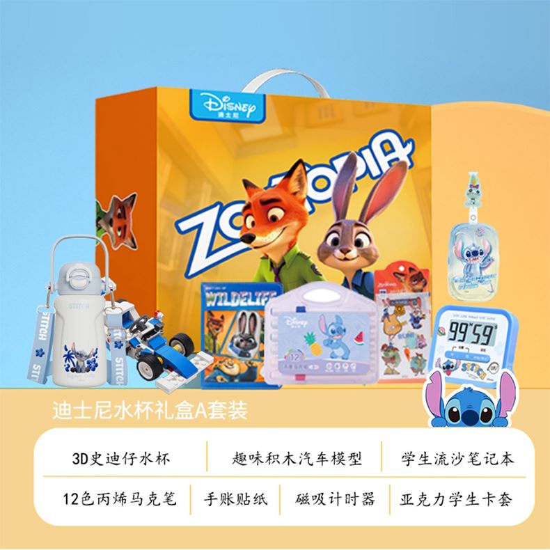 迪士尼瘋狂動物城兒童保溫杯玩具、文具大禮包套裝7件套8882