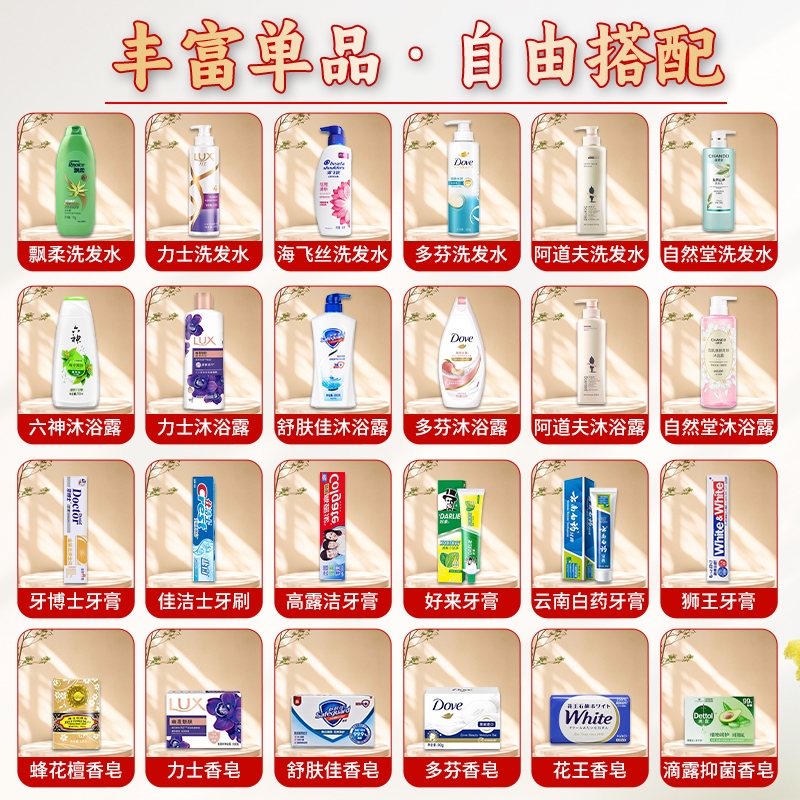 禮盒尺寸:32*8.5*24.5cm 包裝尺寸:66*46.5*51CM 產(chǎn)品配置:(香型隨機(jī)) 半畝花田洗發(fā)水500ml 半畝花田沐浴露500ml 奧妙洗衣液950g 高露潔牙膏90g 高露潔牙刷三重深潔 潔麗雅毛巾69*33cm 沐浴球 隆力奇香皂95g